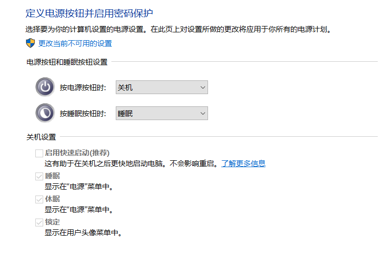 - 取消勾选快速启动:在下方的 “关机设置” 区域中,找到 “启用快速启动(推荐)” 选项,取消该选项前的勾选状态。